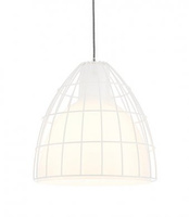 Kolekcja lamp wiszących i ściennych do aranżacji nowoczesnych wnętrz. Zamknięte w metalowych klatkach szklane klosze będą zauważalnym elementem dekoracyjnym, podkreślonym surowością metalowej klatki i kolorem przewodu w tekstylnym oplocie.