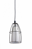 Kolekcja lamp wiszących i ściennych do aranżacji nowoczesnych wnętrz. Zamknięte w metalowych klatkach szklane klosze będą zauważalnym elementem dekoracyjnym, podkreślonym surowością metalowej klatki i kolorem przewodu w tekstylnym oplocie.