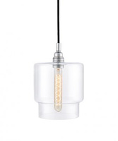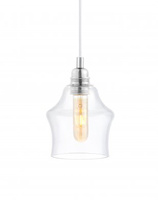 Lampa wisząca ze szklanym, transparentnym kloszem zawieszonym na przewodzie w tekstylnym oplocie. Minimalistyczne szklane formy wpisują się dyskretnie we wnętrze, a kolor przewodu stanowi o indywidualnym charakterze oprawy.